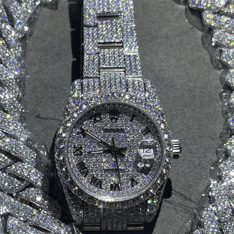 손으로 만드는 인레이 힙합 보석 맞춤 변경 차가운 아웃 고급 VVS 모이산니트 다이아몬드 왓치무아상아니트 시계 로렉스