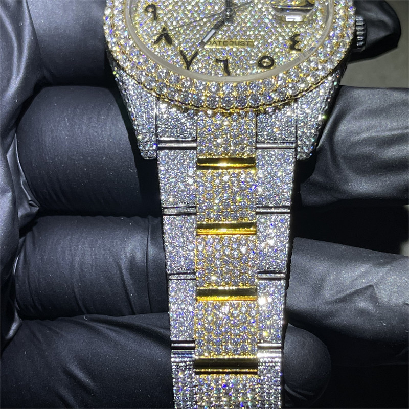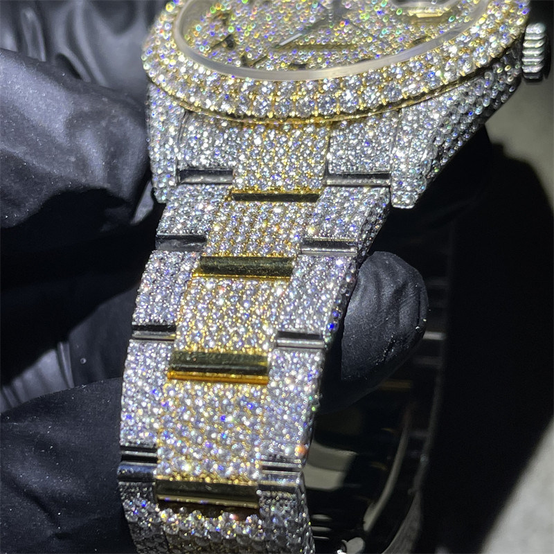 VVS 모이산니트 시계 최고 복제품 움직임 자동 블링 아래에 있는 시계 고급 풍만한 가슴 바깥쪽에 차가운 모이산니트 시계